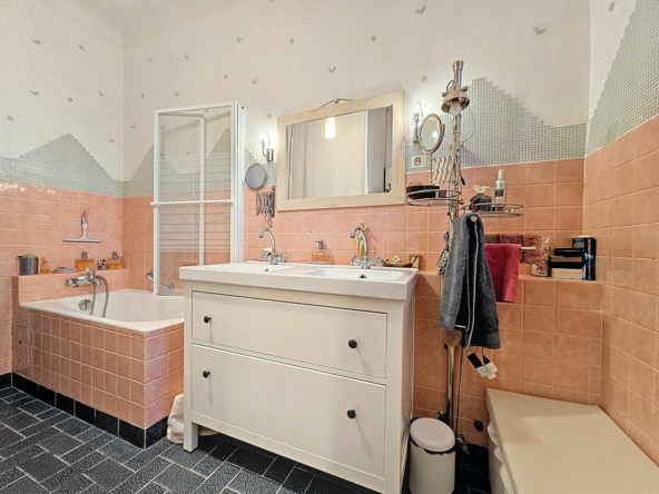 Double Vasque Salle de BainSalle de bain avec meuble double vasque et rangements, gage de confort et d'optimisation de l'espace.