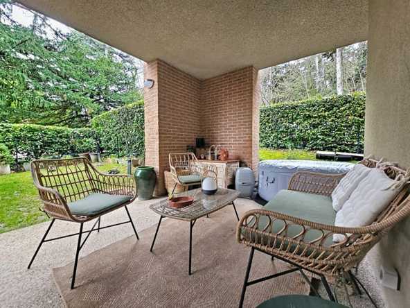 Situé en rez-de-chaussée avec son entrée indépendante, il offre un cadre de vie rare, alliant confort contemporain et douceur de vivre. Dès l’entrée, les volumes généreux et la luminosité naturelle séduisent immédiatement.