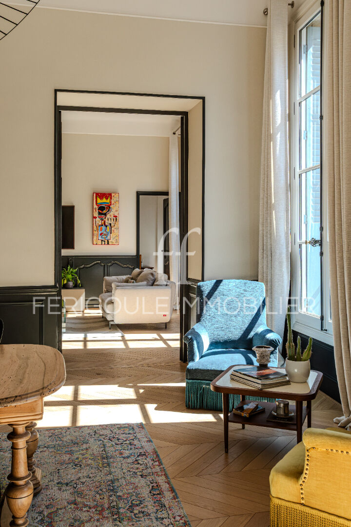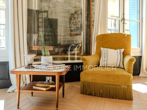 Idéalement situé entre la place Crillon et la place de l’Horloge, à l’abri de toute nuisance, ce superbe appartement occupe le premier étage d’un immeuble de caractère du début du XIXe siècle.